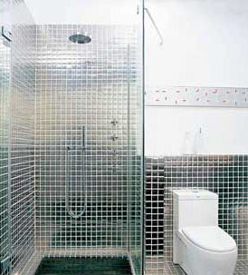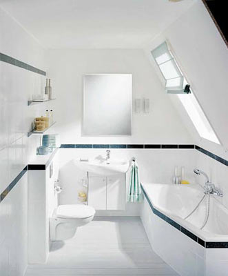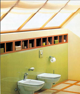 半倾斜式屋顶:可以倾斜屋顶的下面安装浴缸,充分利用这个空间。