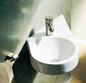 改变方面的面盆:挂墙式的设计和超小的尺寸,使得它放在狭窄的卫浴间里成为可能。