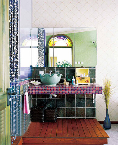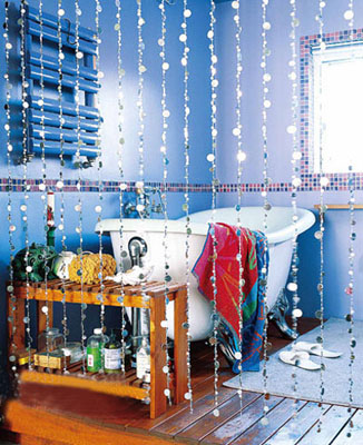 2、材质要素:亮片珠帘为卫浴间营造妩媚浪漫。