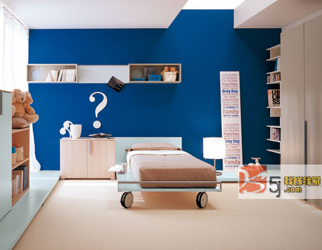 在选择墙色时可先考虑家具的颜色:家具淡黄、白色,墙面可选用淡色调;家具深色,就不能用深灰的墙色,不然房间会没精神。顶面一般要用浅色