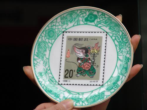 这是一种将邮票艺术与陶瓷艺术融为一体的集邮收藏品。它是经我国邮政部门批准,为纪念或庆祝与集邮有关的活动而设计制作的一种以邮票为主图的艺术瓷盘。