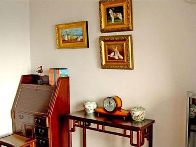 一个古色古香的柜子,几幅简单的画,将中式和田园巧妙地融合在一起。