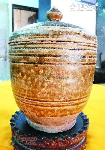 这尊五代越窑青釉盖罐,长圆形,浅圈足,壶内外满施青釉,釉面开细碎片纹,壶流根部积釉处产生窑变现象。距今已有1100多年历史。