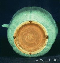 由于这套注子、注碗没有可供对比的标准器作参照,目前对其生产的年代、窑口还不能确定。尽管如此,这套注子、注碗的特征却与古文献的一些记载有相合之处。如欧阳修的《归田录》一文曾记述:“柴氏窑色如天,声如罄,世所稀有,得其碎片者,以金饰为器,北宋汝窑颇仿佛之。当时设窑汝州,民间不敢私造,今亦不可多得……”再有明代人在《格古要论》中记载:“姓柴时所烧……天青色,滋润细腻,有细纹,多是粗黄土足,近少见……”又有清秘藏记载:“柴不可得,青如天,明如镜,薄如纸,声如罄……”等等。所以说,这套精美的注子、注碗是否可能为柴窑器呢?当然,这还有待于专家学者的进一步研究与考古挖掘的证实。