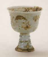 说 明: 撇口,深腹,竹节状外撇高圈足。通体施卵白釉。
