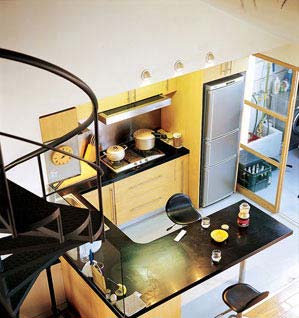 另外,厨房中总有些小角落,折叠或长度可调节的连柜餐桌可以充分利用这些小角落,而且上面做餐台,下面还可以做推拉式高柜,这种储藏能力很强的柜体大大减少了对空间的需求。如果是开放式厨房,将料理台延伸出来做成小酒吧也是不错的构思。