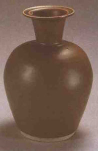 北宋和金代定窑瓷器中的褐釉品种。主要器形有碗、杯、盘、碟、瓶等。根据窑址调查发现,曲阳涧磁村中心窑场出现紫定瓷片的范围很小,说明宋金时代生产数量不多,品种也不能和白定相比。紫定器形精巧玲珑,白胎,有的很细腻,百的稍粗糙、但仍比粗瓷细得多;釉层薄,釉面均匀光亮而平整,有的为柿红色、有的作褐红色,有的为灰褐色。紫定一般没有装饰,少量制品和黑定一样,用金彩绘盛开的牡丹花纹。(见下图)