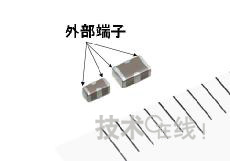 图:TDK可调节ESR的积层陶瓷电容器。外部端子看似有4个,但实际的外部端子与普通的原积层陶瓷电容器一样,只在两端有。侧面看似端子的部分是用于在内部电极之间进行连接的布线。