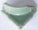 绿之韵:吉州绿釉  自然界植物之绿色是轮回的、有季节的、短暂的。如何永恒,古人便将生命之绿,很巧妙地移植在陶瓷器上。图5宋代吉州窑绿釉瓷枕之绿色,可以说是包含了众多宋代绿釉器的信息:蛤蜊光、绿釉开细片纹、划花的率真、绿釉的老气、土沁、胎质、做工等等。难得出自水坑,十分漂亮,无剥釉现象。比一个巴掌大,切割一下,作镇纸用也很好。宋绿釉瓷枕,当寝具用,头枕绿色,心旷神怡;当陪葬用,枕上绿色,生命永恒。