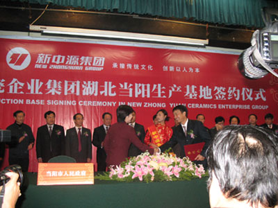 新中源决定落户当阳的信息传开,陶瓷企业纷至沓来。锦悦贸易公司等两家企业表示,要随着新中源一同落户当阳。去年10月19日,湖北帝旺实业投资公司与当阳市签订了投资2亿元建设6条中高档陶瓷生产线的项目协议。当阳引资的关键是什么呢?新中源集团总裁霍镰泉一语破的:“关键在企业发展的生产要素和软环境。”