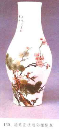 鼓腹,口足内敛,平底或圈足,形似橄榄。有素身与瓜棱式之分。为清代流行器形,始创于顺治朝。雍正、乾隆时最为常见。(见图130)