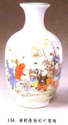 瓶式之一。因形似长圆形灯笼而得名。流行于清雍正、乾隆时期,造型为直口,短颈,丰肩,筒腹,圈足。 (见图134)