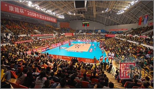【德化网 讯】(德化网摄影记者 谷莹) 继福州、晋江两场赛事后,2008中国女排与古巴女排的第三场对抗赛在2月26日晚上19:30在厦门嘉庚体育馆进行,据悉,当晚吸引了约近六千多名体育爱好者蜂拥前来,县领导涂健圻、黄国庆、林华武、黄耀昆、温文英等也兴致勃勃的到场观看这场体育盛事。经过五局的较量,中国队以3比2险胜对手,在中古女排对抗赛中赢得三连胜,五局比分为25比23、19比25、25比18和15比11。