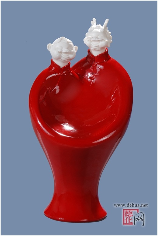 最值得称道的是陈仁海大师开创性的将生肖文化融入和谐文化之中,创造了“中国白”、“中国红”“和谐一家”生肖个性化全家福系列收藏瓷雕。他将生肖这一炎黄子孙的生命守护神,从精神层面物化成可看可摸的物质形态,从中国传统的石刻造像,民间剪纸与当代动漫等造型艺术中,捕捉生肖造型的神韵,提炼成一种充满艺术魅力的“中国白”十二生肖肖像图式,将十二生肖肖像与精心设计制作的“中国红”瓷身完美结合,并对收藏者的生肖进行个性化制作,从而形成“唯一”的只属于自己的特殊纪念瓷雕。“和谐一家”系列生肖纪念瓷,有寓意夫妻恩爱的新婚、银婚、金婚结婚纪念瓷“和和美美”;有寓意家庭幸福美满的“圆圆满满”;有寓意夫妻相亲相爱的“白头偕老”等等。陈仁海大师的“和谐一家”生肖纪念瓷,其创意的思想力深刻、智慧、亲和,对和谐社会建设起到了积极的推动作用。作品一经出炉,预定者骆绎不绝,成为人们馈赠和收藏的时尚礼品。