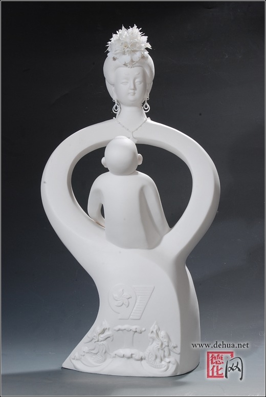 1997年7月1日,香港回归祖国,一洗百年国耻。陈仁海大师的一款“紫归牡怀”(子归母怀)“中国白”作品应运而生。作品选用上乘“中国白”瓷土,构思巧妙,制作精细,作品以母子相拥为基本构图,线条简洁,人物生动,寓意深刻,通体洁白如玉,现已成为香港回归历史事件的重要艺术珍品。