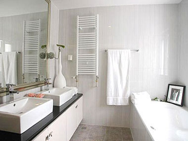 极度简约的卫浴室内设计,浴池与洗手台的空间运用的十分合理。