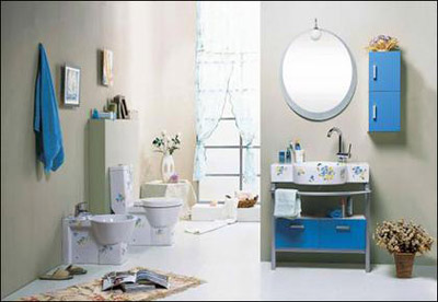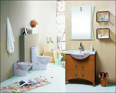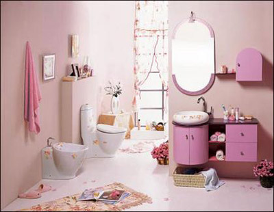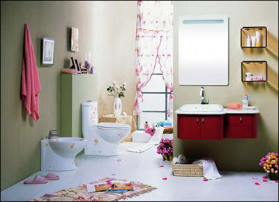 玫瑰花点缀洁具,整体以玫瑰色系为主,极有浪漫情调。