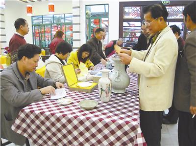 2月24日晚上,中山古陶瓷收藏爱好者相聚一堂。在“年年有鱼”餐厅举行藏品交流活动,近百件古董陶瓷让人惊艳。有资深藏家表示,作为2008年戍子年的第一次业内交流,本次活动展出的藏品质量与往年相比有明显的提升。