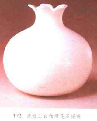 尊式之一。始见于明宣德时期,流行于清代,器形似石榴果实,通体由纵向凹曲线分为六瓣形,口部外卷、短颈鼓腹、圈足外撇、台阶式底。清康熙、雍正、乾隆时期制品水平尤高。雍正时期石榴尊除继续烧造宣德器形,还有一种作外撇五瓣式花口、束颈、腹部浑圆、浅圈足。(见图172)