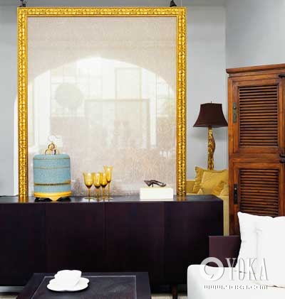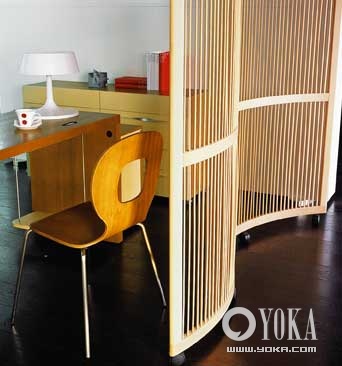 设计时尚的屏风,有时甚至比摆放在它前面的家具更加吸引目光。这类屏风无论是材料还是设计都非常大胆、新颖。选料上,往往摈弃了那些厚重的材料,由透明、轻柔的材料所取代。所以包括卡纸、塑料、绢纱等等一些材料都用在屏风的制作上面,加上特别的设计,有相当出彩的效果。若选择时让你无从入手,建议从图饰和色彩上入手,采用几何、花卉、纯色这些元素的屏风无论什么时候都不易过时。
