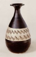 说 明: 施酱釉,腹部露胎,在胎上划刻两组水波纹,装饰风格独特。
