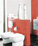 半高的隔墙是现代卫浴空间划分与功能附着的一个典范