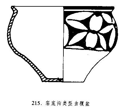 陶瓷容器腹部形式之一,造型为腹中部向外弧凸、圆折、其下向内作弧形收束,转折曲线明显。新石器时代仰韶文化半坡类型曲腹罐、庙底沟类型曲腹碗、盆等为典型代表。(见图215)