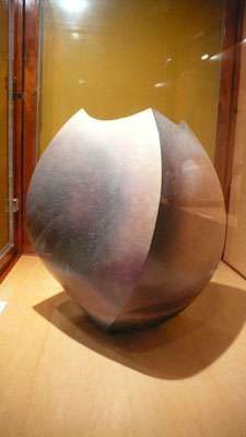 和人们平日所见的日本陶瓷小巧精雅有所不同,这次展出的陶艺作品,除了不少是抽象、几何形状,更有许多是很大件的器皿,可见在风格上与传统的有很大分别。