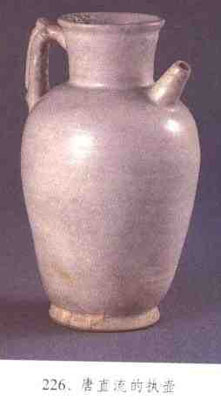 陶瓷容器流的一种形式,呈直管形。直流一般安装在器腹上部或肩部,口伸向斜上方,如新石器时代的陶盉、唐代的注子、明清的部分紫砂茶壶。唐代注子的直流还分为圆筒形和多棱形两种外观。(见图226)