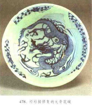 陶瓷器修复方法之一。将陶瓷器残片用各种粘合剂进行拼粘。(见图478)