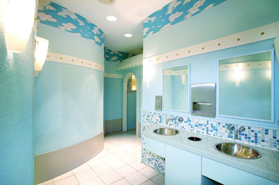 追求卫生间的考究和奢靡,被认为是中产阶级重视生活品质的标志。一个称心的卫生间,除了干净舒适之外,视觉上的氛围也举足轻重。瑞士心理学家卡尔·琼就曾说过:色彩是潜意识的母语。色彩可以唤起早已忘怀的记忆和情感,对于家居色彩也是如此。试想,步入一个功能齐全而又色彩斑斓的卫生间,将会产生多么强烈的感官刺激啊。
