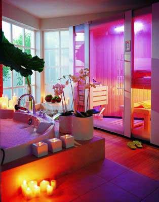 给平日乏味的浴室披上新衣,妖艳的红色形成的气氛很适合营造二个人的浪漫温馨和享受二人世界,在恰当的时候,在大大的浴缸四周把蜡烛点燃,可爱的小火苗,更加让人为这一切陶醉。