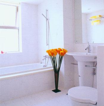 由于空间受到限制, 额外功能就要省略,基本功能则不可缺少。因此,在空间布局上,当然要首先考虑能满足基本需求的配制,节省并充分利用有限的空间。拓宽窄小空间可以有一些措施:例如色彩上巧用浅色,以单纯而带有质感的白色瓷砖为主,搭配黑白相间的斑马条纹瓷砖,能使空间在视觉上得到拓展;卫浴用品的选择上着重体现功能性,最有效地利用有限的空间;妙用镜子,一块大小恰到好处的镜子,作用超乎你的想像,往往能在满足洗漱功能的同时,将空间拓宽一倍。