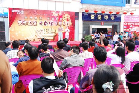 3月8日深圳安华卫浴风尚馆沙井世纪中心店盛大开业,开业当天举行了“安华卫浴”——风尚盛典、倾城巨献活动来回馈消费者,超低折扣,众多好礼,安华专门店内生意十分火爆,开业现场还举行了隆重的开业典礼和丰富多彩的文艺演出。