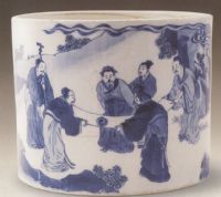 青花五老图笔筒