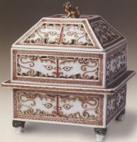 说 明: 此尊属燃焚香料用具,造型及纹饰均仿青铜器,做工精细.