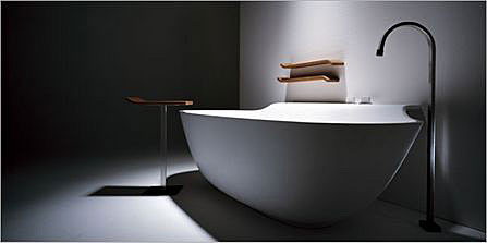 独立浴缸的历史和人类有洗浴习惯的时间一样长。像是全人类的集体无意识创造,从古罗马到中国盛极的唐朝,这种独立式洗浴一直是从贵族到百姓所钟爱的方式。可以想象,当我们赤裸裸地躺在里面的时候,温暖的水轻轻地抚摩我们的身体,在水的载歌载舞中外界完全与自己的身体区分开,半失重的状态让神经得以放松,意识渐渐飘忽,这会儿仿佛又重新回到了母体。独立浴缸,正是对母体环境最真切的模仿。