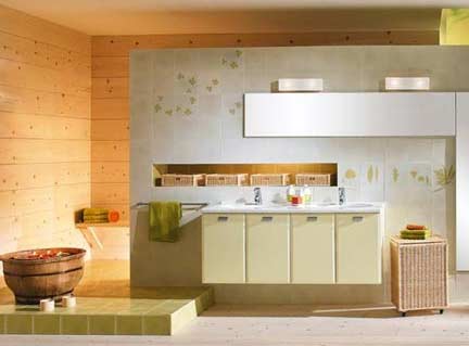 在空间层次上,普通的墙砖、地砖很难打造出满意的效果时,不妨使用一些“另类”的瓷砖,如仿木纹砖、仿竹纹砖等,这些墙、地砖会让人误以为是竹、木材质,但只有用手触及的时候,指尖的冰凉感觉才会告诉你那是瓷砖!