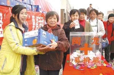 在开幕式现场,还组织了“迎三八‘橙’献爱心募捐活动”。全体参赛运动员及市场的商户,只要献出一份爱心,便可获得由闽龙提供的“爱心橙”一箱。活动筹集的款项将全部上交北京市红十字会,用于帮助灾区重建。