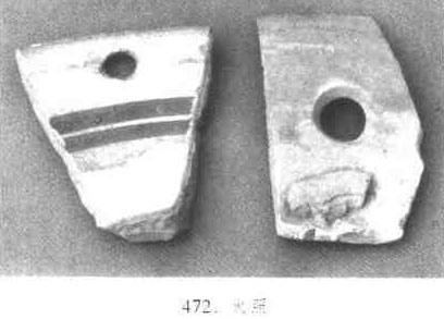 陶瓷器焙烧时测定窑内温度的窑具,又称“照子”或“火标”,亦称“试片”。以瓷土制作、往往是用碗等器物的坯件加工而成。形状一般为三角形,上平下尖。上半部施釉、并镂一圆孔。使用时,将其置于窑内从观火孔可以看到的位置,需验火时用铁钩将其从观火孔钩出。每烧一窑要验火多次,每验一次,就钩出一个。可及时掌握窑内温度和气氛的变化,十分有利于瓷器的烧成。火照盛行于宋代,是简便有效的测温器具。(见图472)