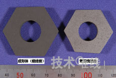常压烧结可一次烧结出大量烧结体,因此与热压烧结相比,可大幅提高制造效率(图5)。另外,还可利用现有的成型法制成所要的形状、进行烧结,所以可将烧结后的研削加工减少到最小限度。产综研表示,常压烧结法的制造成本在热压烧结法的2/3以下。