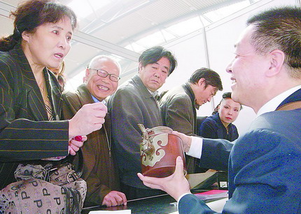 3月17日,在2008中国西安国际艺术品收藏博览会上,鉴定专家现场免费为藏友鉴定藏品。本次展会全面展示古玩、字画、陶瓷等艺术藏品,为西安提供了一个高规格、国际化的艺术展示交易平台。(巨跃先摄)