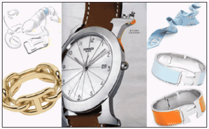因此,品牌的个性文化链的塑造是以品牌在风格及定位的个性化为基础之上,通过系列的品牌形象展示与企业内部管理塑造为整体核心依据,使“文化”二字形成真正的有机体,通过穿越品牌在产品设计、市场形象推广、终端销售及消费感受各个领域之中,对品牌最终感知而形成的“贯穿链条”。因而对品牌核心价值与品牌基因的深入整理与挖掘,会使品牌在产品与终端展示之中形成整体。如果简单一点来谈,“品牌基因”即是品牌通过何种识别形式让消费群体产生除品牌标识与LOGO外再识别的元素,例如:HERMES(爱马仕)产品系列及终端展示中对于“马”及“H”基因的应用,无论是在其产品之中,还是在终端店铺的展示物品之中,马的图案(如图2标志马车图案的演绎)、马具(马链、马鞍)与“H”字母(如图3 HERMES产品中品牌基因的应用)的应用等等,无不在说明品牌的起源与历史演变,无论何时与何地在除却标识之后依然会对此件产品的品牌所属认识由佳。