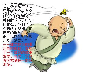 “"秃子背洋枪,洋枪打老老虎,老虎吃小孩,小孩抓公鸡,公鸡吃蜜蜂,蜜蜂叮秃子。"这则童谣,说明了一个自然的规则:在连续的循环中,生命才得以生生不息、周而复始。”--建立权力的循环制约机制,有利于一个组织的健康发展,当然它也有可能牺牲。