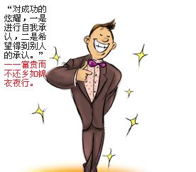 “对成功的炫耀,一是进行自我承认,二是希望得到别人的承认。”--富贵而不还乡如锦衣夜行。