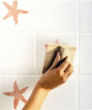与镂花模板法相比,用印章更省时省力,而且易于操作。试一下,您一定会大吃一惊。图中这款海星图案是浴室墙壁图行天下的绝佳装饰。