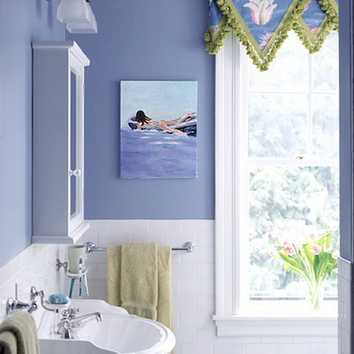 这浴室已有两个储物墙柜,配上简洁的柱式洗手盆极为适合。墙柜上部装玻璃门,增加了通透感,侧面向洗手盆斜开,既避免了方正呆板图行天下的形状,又能在洗手盆前顺畅地使用抽屉。