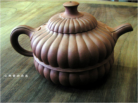 紫砂茶具,属陶器茶具的一种。它坯质致密坚硬,取天然泥色,大多为紫砂,亦有红砂、白砂。这种陶土,含铁量大,有良好的可塑性。紫砂茶具的色泽,可利用紫砂泥泽和质地的差别,经过“澄”、“洗”,使之出现不同的色彩,如可使天青泥呈暗肝色,蜜泥呈淡赭石色,石黄泥呈朱砂色,梨皮泥呈冻梨色等;另外,还可通过不同质地紫泥的调配,使之呈现古铜、淡墨等色。优质的原料,天然的色泽,为烧制优良紫砂茶具奠定了物质基础。据专家介绍,紫砂茶具耐寒耐热,泡茶无熟汤味,能保真香,且传热缓慢,不易烫手,用它炖茶,也不会爆裂。因此,历史上曾有“一壶重不数两,价重一二十金,能使土与黄金争价”之说。但美中不足的是受色泽限制,用它较难欣赏到茶叶的美姿和汤色。