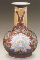 说 明: 康熙珐琅彩瓷器以盘、碗较为多见,瓶类器甚为罕见,而且康熙珐琅彩瓷器多以料彩写款.此器既为瓶类器,又有与众不同的刻款,故弥足珍贵.