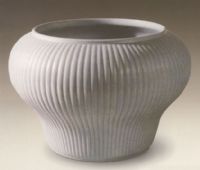 说 明: 此器仿宋代汝窑瓷釉色,像竹制鱼篓形,十分端巧秀丽.
